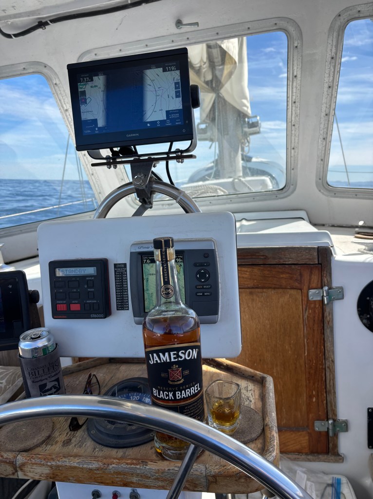 Another refresher was the sad state of weather proofing we performed. The seas were lumpy after two weeks of high winds, and much of our Galley and Salon ended up on the sole. No worries, we had Black Barrel!